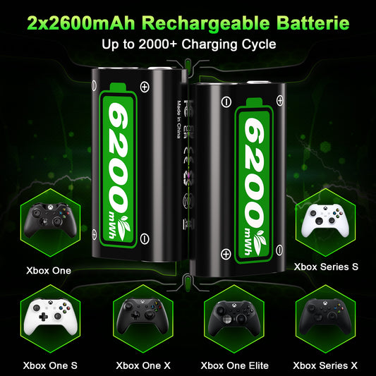 Ponkor 2×6200mWh Rechargeable Battery Packs with Charger for Xbox Controllers